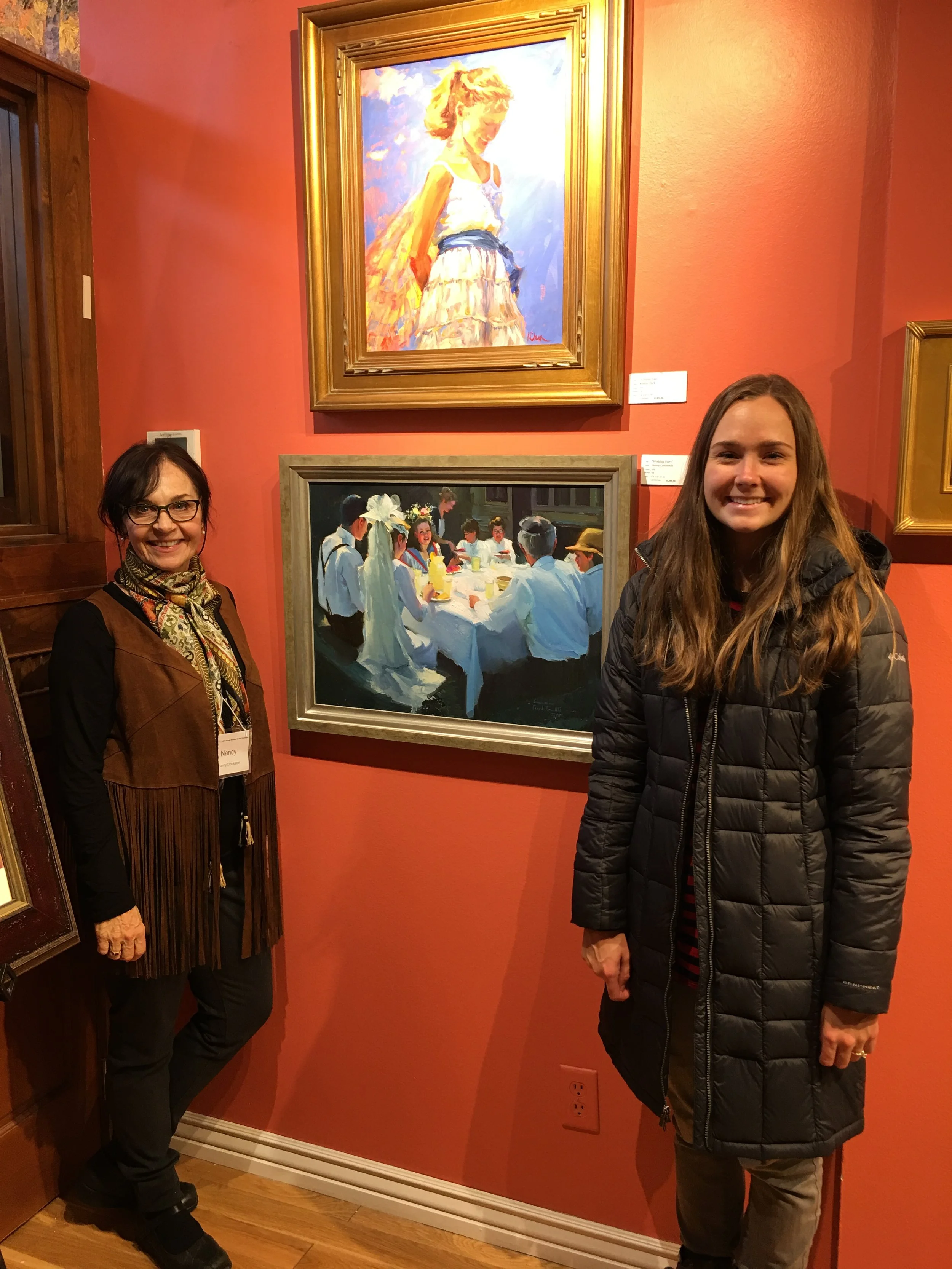 We are Mary and Lizzy, sisters, best friends, and granddaughters of Nancy Crookston. Granny passed away in 2023 and has left a large space in our hearts. We grew up spending time in her paint covered studio, modeling for her paintings, watching colors bloom on canvas, and learning that art wasn’t just something Granny did—it was the way she saw the world.